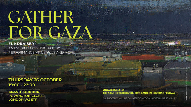 A night of music, poetry and stalls in solidarity with Palestine and in support of Medical Aid for Palestinians The Arab British Centre, Arts Canteen and Shubbak Festival are joined by Zaytoun CIC and Saqi Books to invite you to Gather For Gaza. We have been watching with horror and...